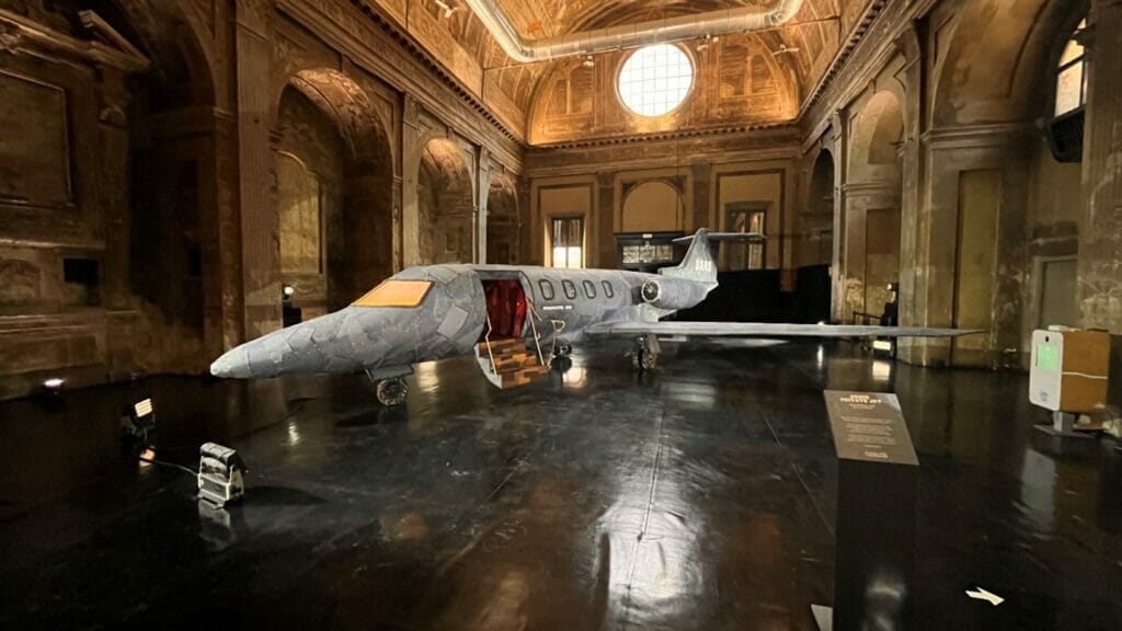 מעניין במיוחד – ומצטלם מצויין – היה גם המיצב של המעצב ההולנדי מרטן באס, שחזר למילאנו עם ״יותר או פחות״, שיתוף פעולה עם מותג האופנה G-Star RAW, שהוצג בחלל מהמאה ה־16 ששימש בעבר ככנסייה. במרכז החלל המרשים ניצב מטוס מנהלים פרטי באורך 15 מטרים, לצד ארונות בגדים וספסלי ישיבה שהוצבו בחלל התחתון, שנבנו כולם תוך שימוש בג׳ינסים ממוחזרים של G-Star, שנאספו כחלק מתוכנית Return your Denim של המותג. זאת, מתוך מטרה להצביע על המתח והדואליות בין הרצון ליותר – והצורך בפחות.