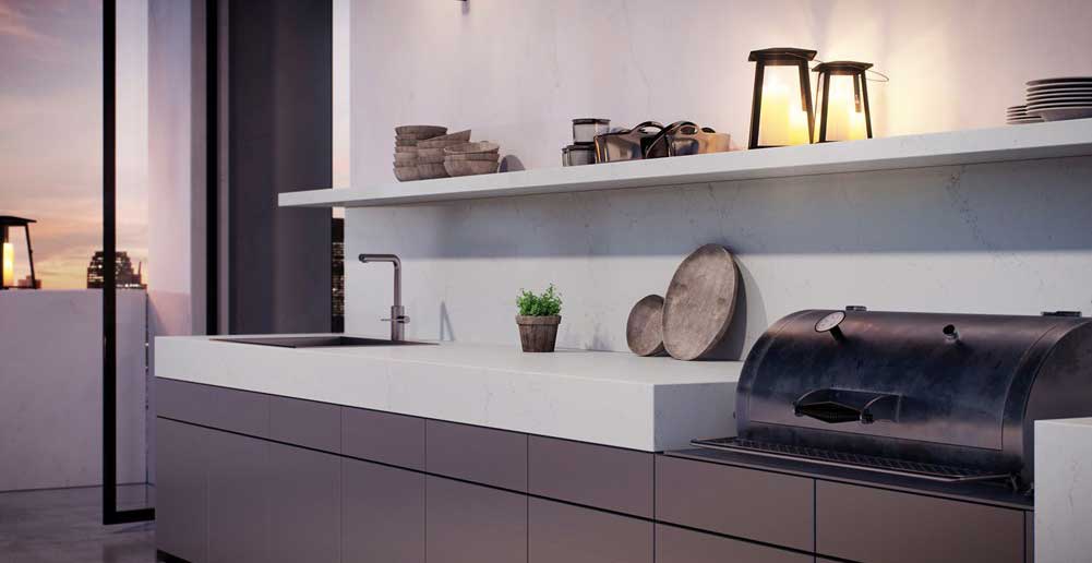 תהליך הפיתוח של המשטחים נולד כמענה לצורך לבשל, ​​לסעוד ולארח בנוחות במטבח שנמצא מחוץ לכותלי הבית. הם יכולים לשמש לקוחות פרטיים ומסחריים כאחד, במשטחי עבודה אישיים, בשולחנות אוכל ובמשטחי אירוח גדולים יותר. מבחינת עיצוב הקולקציה החדשה כוללת שלושה דגמים. דגם Palm Shade 515 במראה הקלאסי של שיש לבן, עם עורקים דויי פחם שחור על בסיס לבן חלבי, שמציגים תחכום עדין ועמוד. דגם Clearskies 406, עם בסיס אפור בטון חלק ומשטחי צבע זעירים, שמדמים מראה ארצי של משטח חלוקי נחל. דגם Midday 405 כולל משטח לבן ״חולי״ מקושט במשטחי צבע לבנים־אפורים ורכים, שמוסיפים מרקם ועומק לחזיתו הנייטרלית.