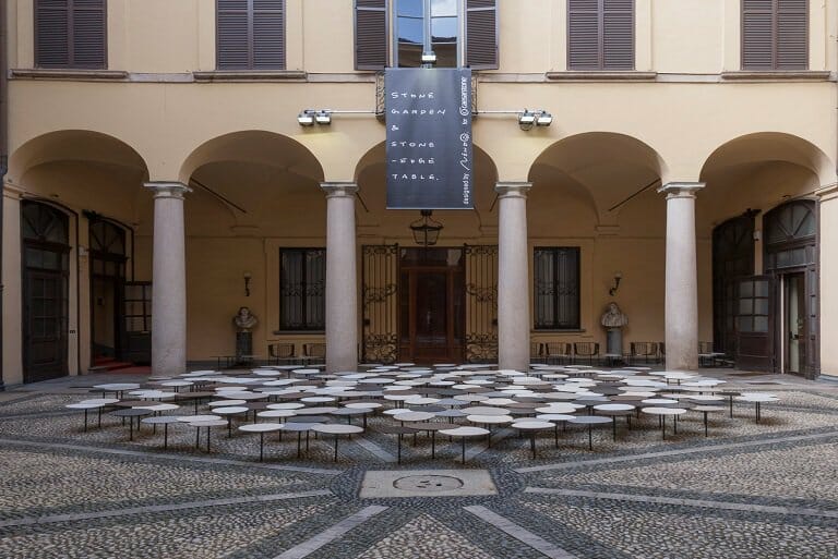 יריית הפתיחה לשיתופי הפעולה של אבן קיסר בשבוע העיצוב מילאנו, התקיימה לפני חמש שנים, בשנת 2013, עם סטודיו ננדו שיצר את ״גן האבן״. המיצב כלל 150 משטחים דמויי שולחן, המעוצבים בצורת אבנים, מיוצרים משבעה גדלים ותשעה דגמי אבן קיסר שונים הנתמכים על מוטות מתכת פשוטים, ומעוגנים במקומם הודות לחלקים חופפים ביניהם המבטלים את הצורך באמצעי עיגון וחיזוק. התוצאה הייתה אשליה של נוף מרחף בהשראת גן סלעים יפני מסורתי, שמזמינה את הצופה לביקור קצר ומפתה מעבר לים.