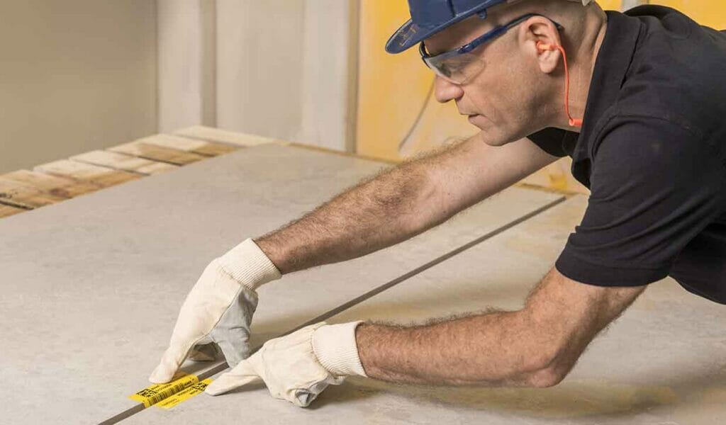 עובד במפעל בתהליך ייצור של משטחי אבן קיסר