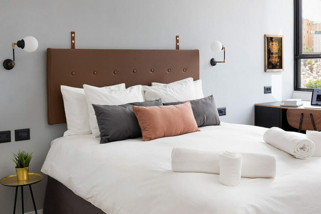 שימוש נוסף באבן קיסר נעשה גם בדירת מלון תל אביבית בת 50 מ״ר בבניין משנות ה־50 של המאה הקודמת. יעוד הדירה הוגדר מראש לטובת השכרות לטווח קצר Airbnb עם אופציה למכירה עתידית. ״שלב התכנון היה מאתגר: הדירה קטנה והרצון היה למקסם את השטח וליצור שני חדרי שינה וחלל של סלון ומטבח מרווחים ככל האפשר.