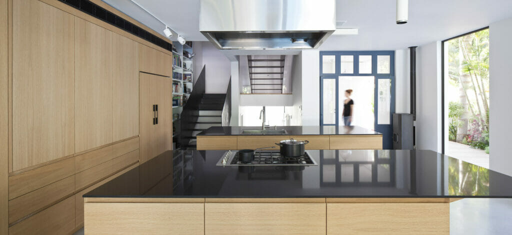 מטבח בעיצוב של האדריכלים לוי חמיצר שיש אבן קיסר.