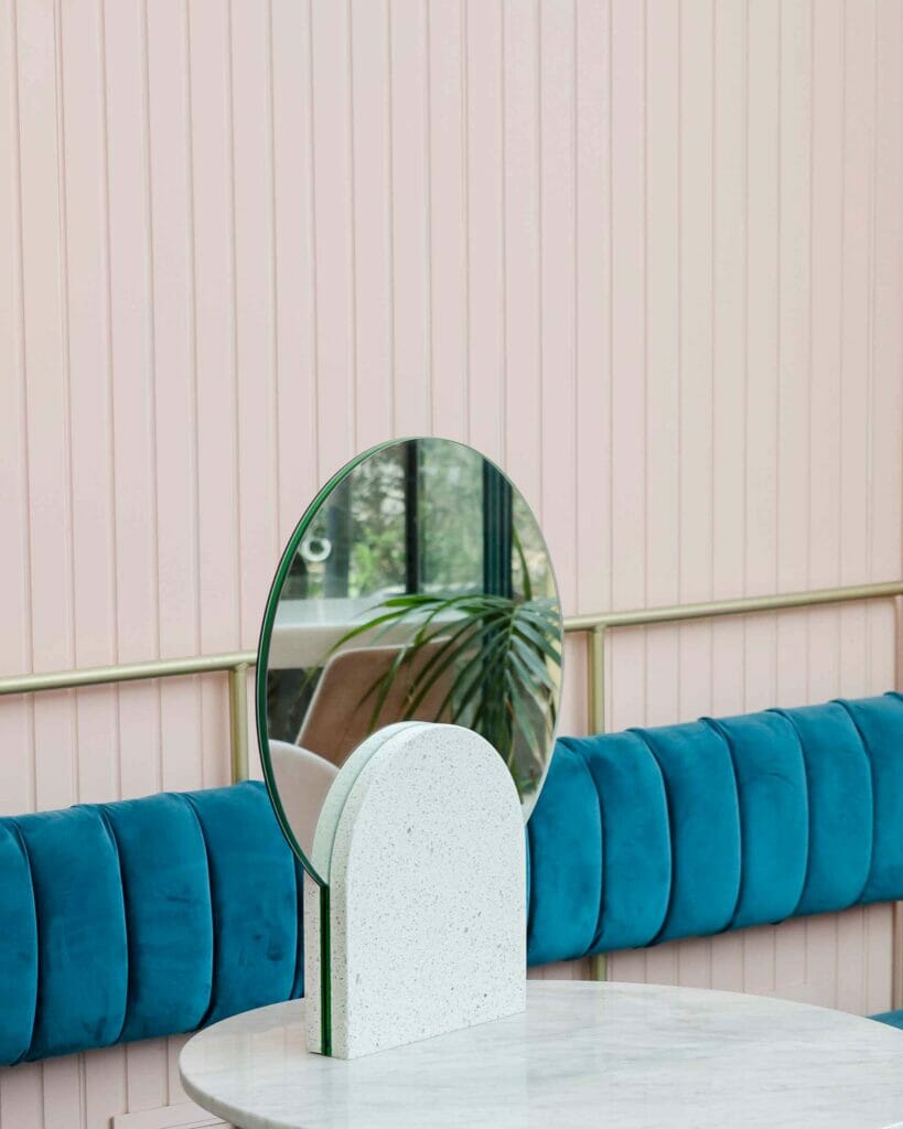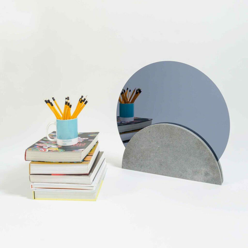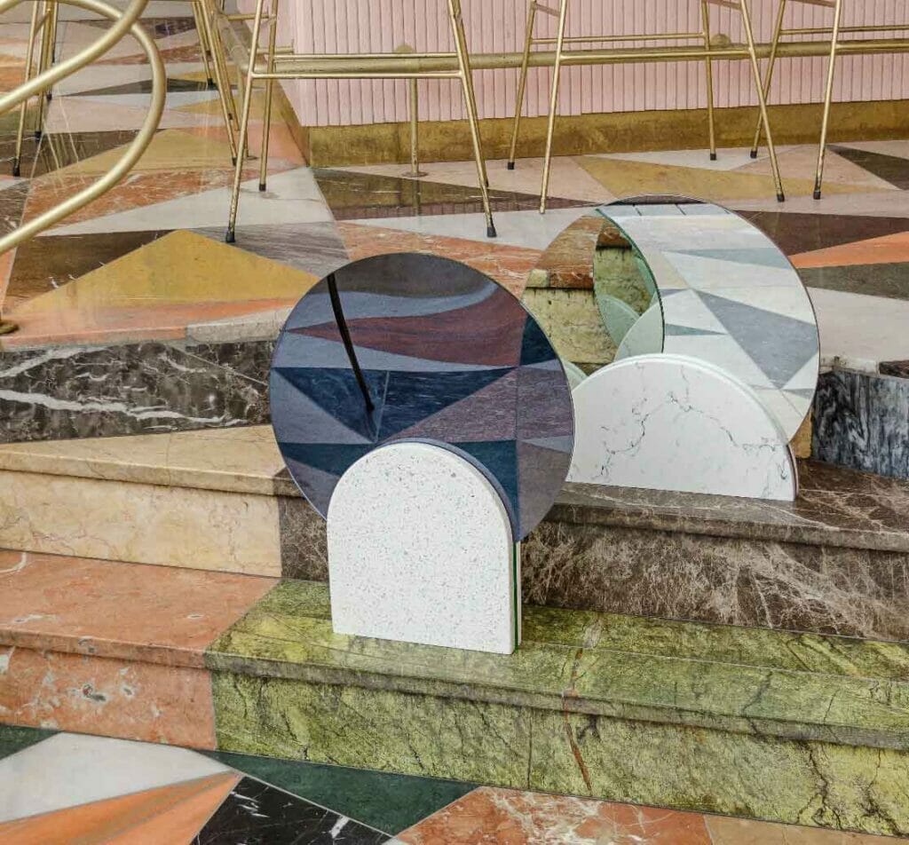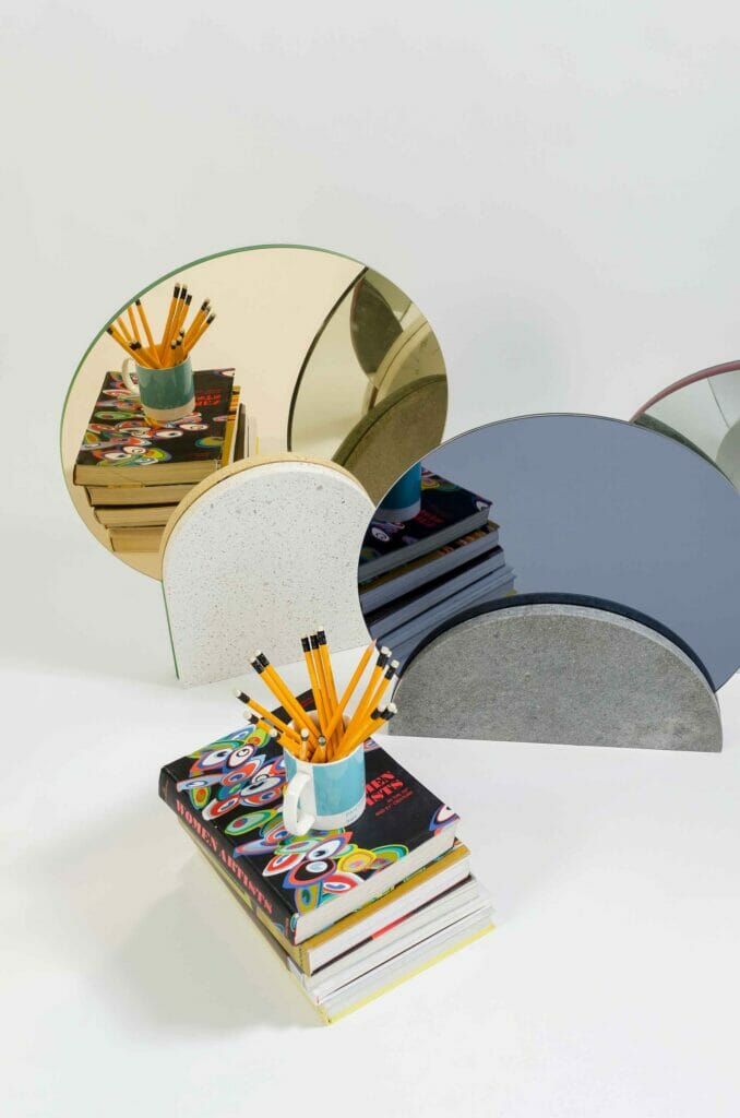 במתחם העיצוב של יריד צבע טרי האחרון הציגה המעצבת רחלי שרפשטיין סדרת אוביקטים במראה רענן ומפתיע, תוך שהיא משלבת בין מראות, משטחי אבן קיסר ומשטחי פרספקס צבעוניים. לאוביקטים הדו־כיווניים והמסקרנים בסיס קבוע שמאפשר להלביש עליו שכבות של מראות בגוונים ופילטרים שונים. השימוש במשטחי הקוורץ של אבן קיסר הקצין את הניגוד בין הנוקשות והעוצמה של המשטחים לבין החומרים שמעבירים שקיפות (פרספקס) והשתקפות (מראה), והתוצאה יצרה יחסי גומלין חדשים בין המרכיבים השונים.