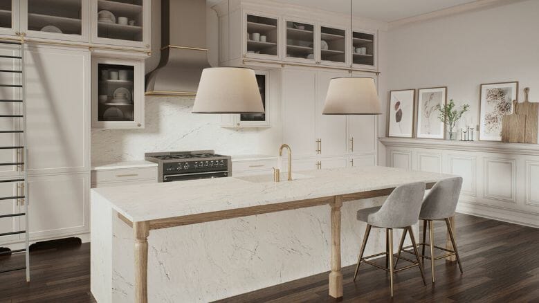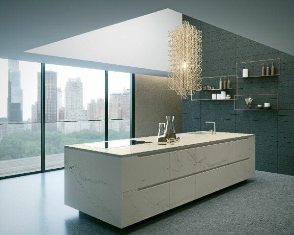 שיש למטבחים – משטח קוורץ קלקטה דגם 5111 Statuario Nuvo גימור מבריק.