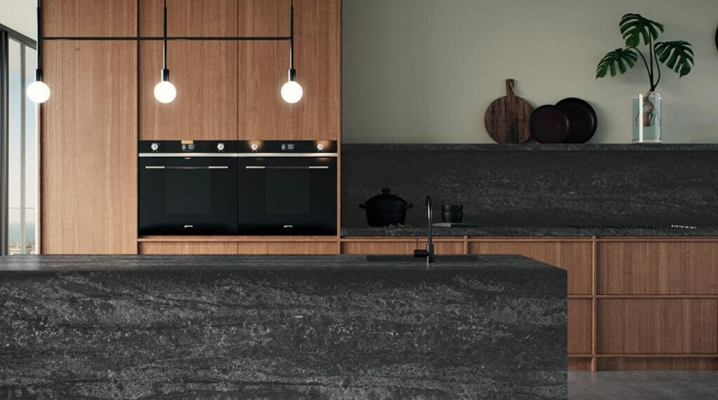 בשחור אפשר להשתמש בטקטיקת מסגור, ממש כשם שממסגרים תמונה, כדי להדגיש חלקים מסוימים ולטשטש אחרים. לדוגמה, משטחי עבודה שחורים אולטרה-אופנתיים, מקולקציית The New Black Collection 2020 של אבן קיסר, כמו Black Temple 5810, בשחור פחם ועם מרקם מחוספס קלות, בהשראת אבנים טבעיות. הנגיעות הבהירות שעל פני המשטח יוצרות קונטרסט לשחור הדרמטי ומוסיפות עניין.