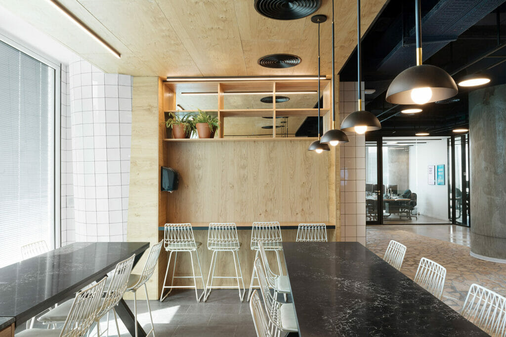 לדוגמה, תכנון החללים הציבוריים של משרדי איירון־סורס נעשה בשיתוף משרד האדריכלים גרינטכטורה, ״במחשבה על יצירת מרחבים נעימים ותכנון חדרי ישיבות בגדלים שונים. אנחנו משקיעים היום המון מחשבה על הפונקציות החברתיות שהחלל צריך למלא, והאתגר הוא להפוך את חדרי הישיבות או את אזורי המטבח לאזורים שמייצרים אינטראקציה חברתית, ובמקרה של המטבח גם לא לשכוח שהוא צריך לשרת מאות עובדים מידי יום״.