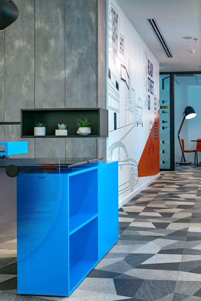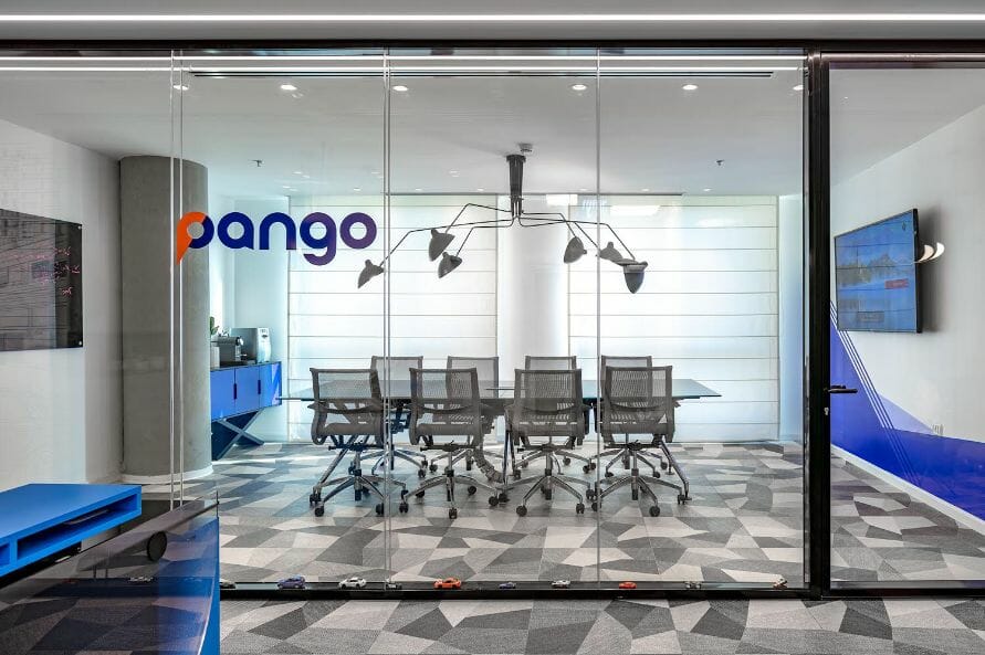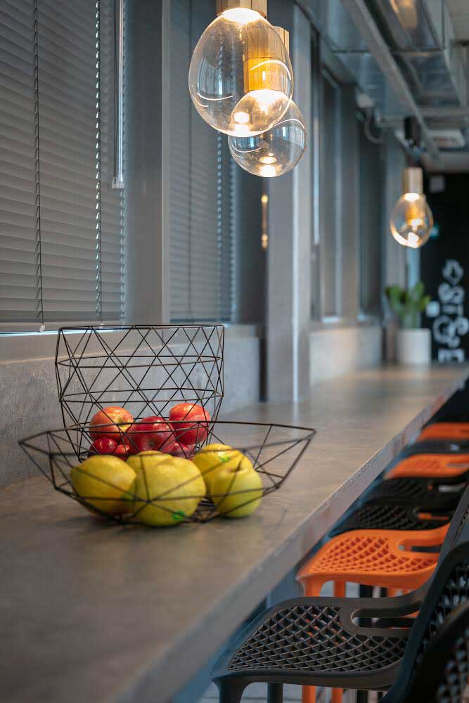 כששגית הנדלר קיבלה לידיה את המשימה לעצב את המשרדים של חברת פנגו בפתח תקווה, היא מספרת שהרעיון היה ליצור מקום שכשנכנסים אליו מרגישים ישר שזו חברה צעירה. ״זה היה פרויקט כיפי, צעיר ודינמי, שפחות חשוב בו הקטע הייצוגי, ולכן הוא משלב הרבה גרפיקות על הקירות ויש לו רצפה מיוחדת״, היא מסבירה. החשיבה הלא שגרתית הביאה אותה לנצל מעבר ארוך שתחילה כלל לא חשבו להשתמש בו, ולהשתמש בו למטבח עם בר באורך שמונה מטרים שצופה החוצה למרפסת גדולה.