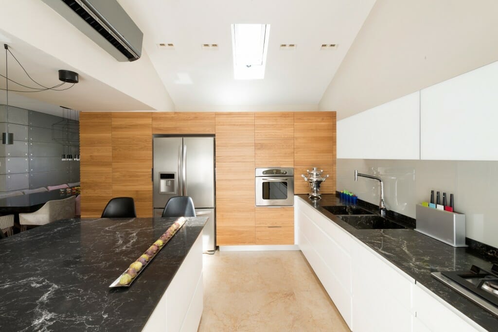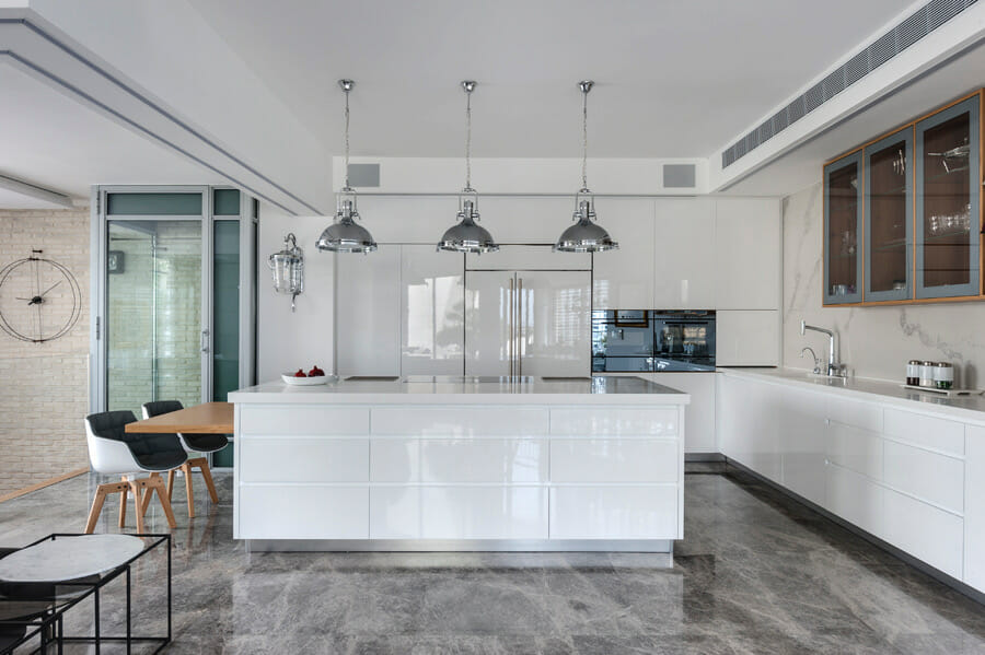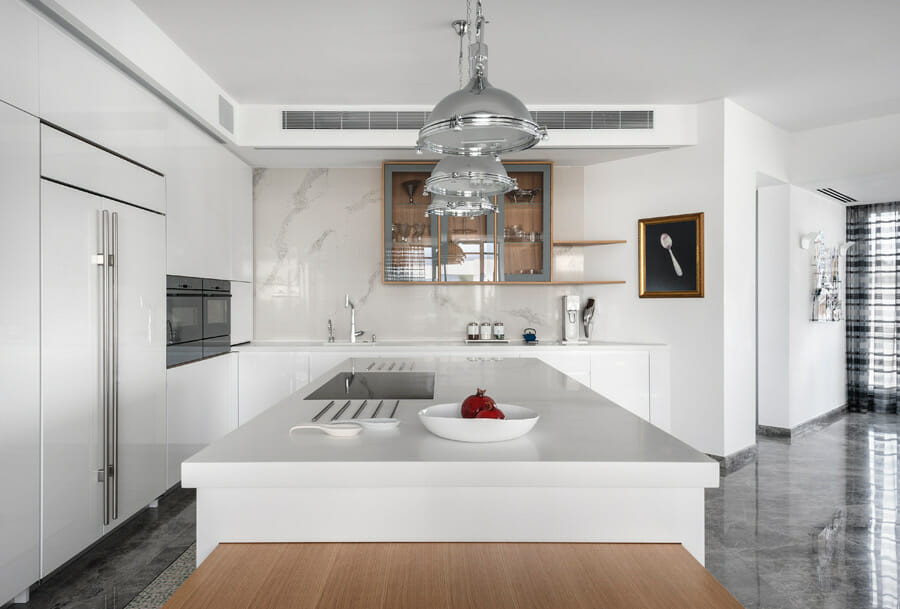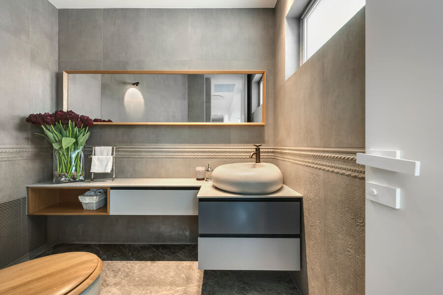 ״בנוסף, אני משתמשת המון בכיורים אינטגרליים, שבהם הכיור והמשטח עשויים מאותו החומר, one-piece, גם באמבטיות וגם במטבחים. זה חומר שמצד אחד הוא עמיד ופרקטי, ומצד שני הוא מאפשר לי לשלוט במראה שלו – מט או מבריק, משוייש או חלק, נוח לי לעבוד איתו. פרקטיות היא דבר שאני לעולם לא אוותר עליו, אני לא מתננת מוזיאונים אלא בתים שחיים בהם.