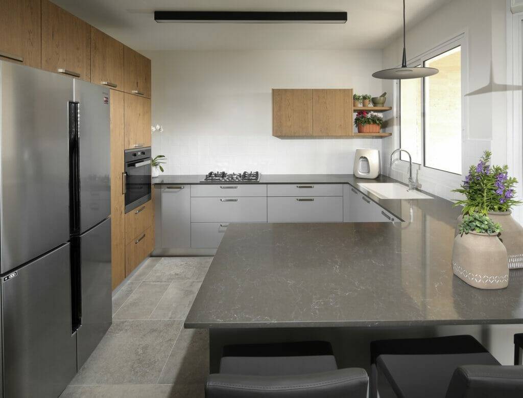 ״ככלל אני אוהבת להשתמש במשטחים של אבן קיסר, קודם כל כי הם מאוד קלים לתחזוקה. אבל מעבר לכך אני אוהבת שהם מציעים פאלטה גדולה של צבעוניות וחומריות. אני אוהבת להשתמש באותם המשטחים, גם במטבח וגם בספסלים במקלחונים לדוגמה. אני חוזרת על אותה החומריות וזה עובד, אני לא חושבת שבהכרח צריך להשתמש במשטחים שונים במטבח או באמבטיה. אפשר לעשות עם המשטחים של אבן קיסר המון דברים: לעלות על הקיר, ליצור גימורים מיוחדים, אלה משטחים מאד גמישים באפשרויות שלך כמעצב. אתה יכול לחתוך אותו בגדלים שונים, ובסוף, לא פחות חשוב, הם מאוד זמינים. קל למצוא אותם בכל הארץ, וזה מאוד חשוב״.