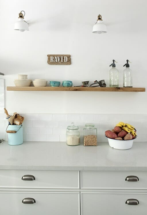 במידה שחלל מוגבל של ארונות מהווה בעיה, נסו להשתמש באובייקטים מורכבים לקיר, בכדי ליצור מקום אחסון נוסף ולשמור על חלל משטח העבודה אך ורק להכנת אוכל ובישול. סירים ומחבתות יכולים להיות תלויים על התקרה או על הקיר, מדפי תבלינים יכולים להיות מורכבים לקיר, וכלים יכולים להתלות בעזרת שימוש ברצועות קיר מגנטיות.