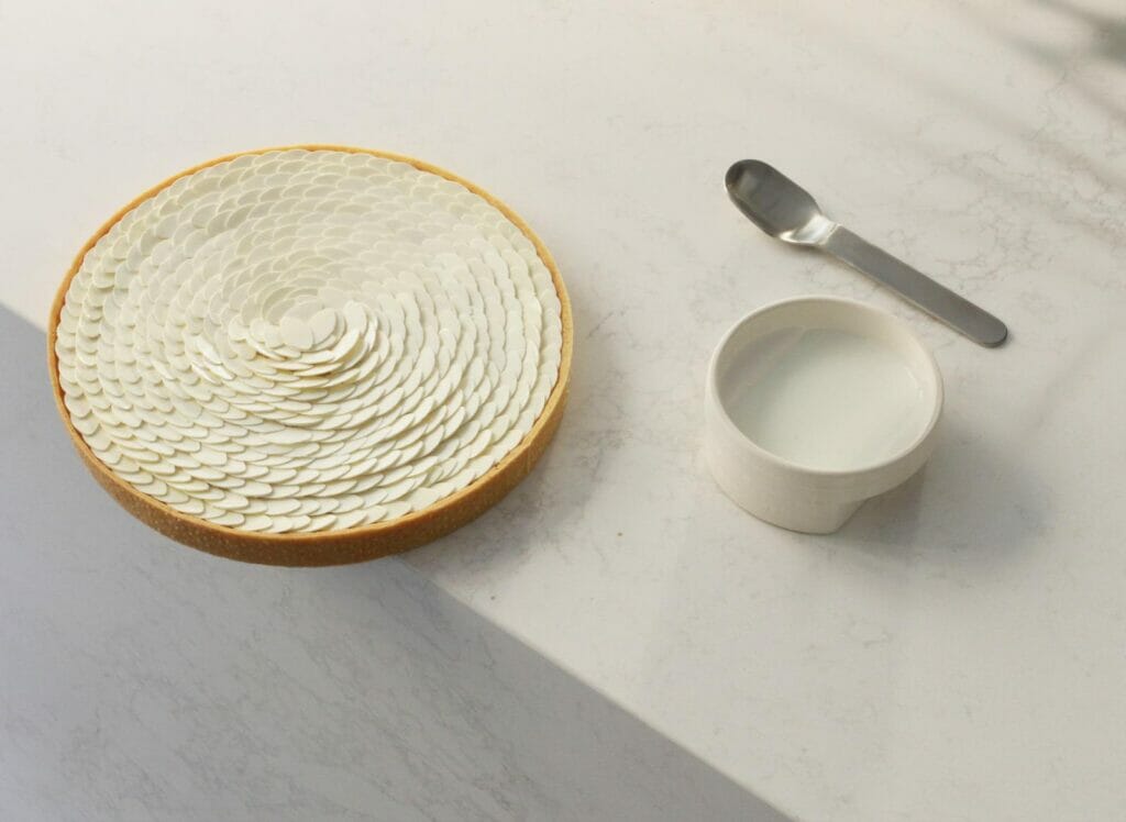 כמיטב המסורת, גם השנה הזמנו את השף-קונדיטור אלון שבו להמתיק את החג ולפנק אתכם בעוגת וניל וחלב מושלמת שאף אחד לא ישכח, או כמו שאלון מתאר אותה "כפי שמשטח 5131 Calacatta Nuvo, המשטח המועדף עליי, מלא בגידים אפורים – כך העוגה הזו מלאה בעשרות פריטים קטנטנים שעשויים מדסקיות שוקולד מטומפרר. הטעם, כמו המראה, מעודן ומאוזן"