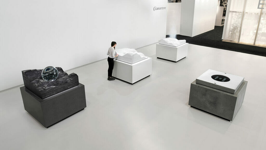 המיצב כלל שלושה איים עשויים משכבות של משטחי אבן קיסר – Vanilla Noir ,Alpine Mist ,White Attica ו־Rugged Concrete. שכבות המשטחים ש״נערמו״ זה על זה בצורות ובגדלים שונים, יצרו מבנה טופוגרפי מרהיב והדגימו את העמידות של המשטחים ואת המבנה החומרי שלהם. כך, המיצב מתח את גבולות החומר, הציג נקודות מבט מפתיעות על תפיסת האי כאלמנט עיצובי, והפך את המשטחים שנתפסים בדרך כלל כדו־ממדיים לאלמנט עם נוכחות תלת־ממדית מרשימה.