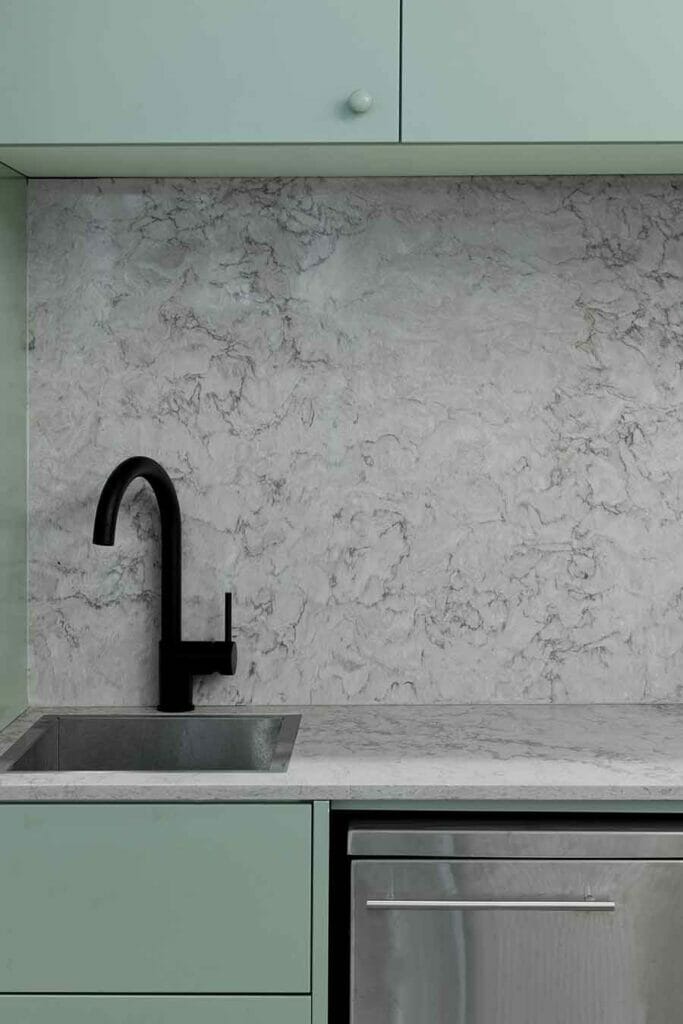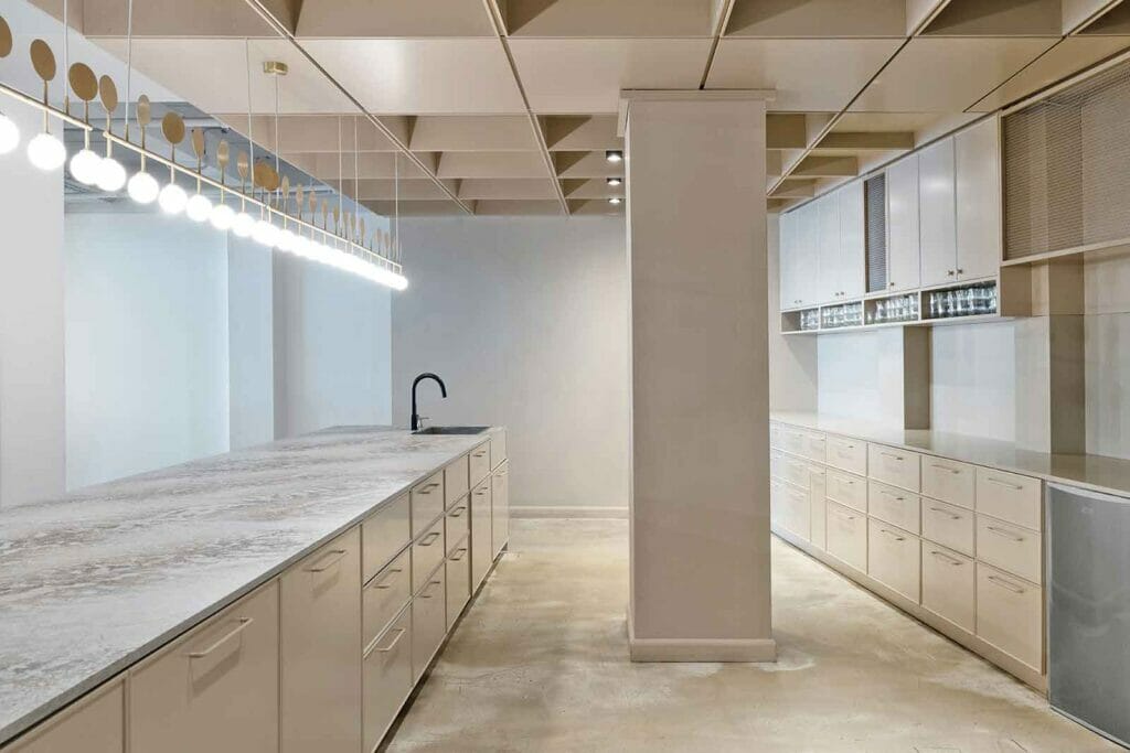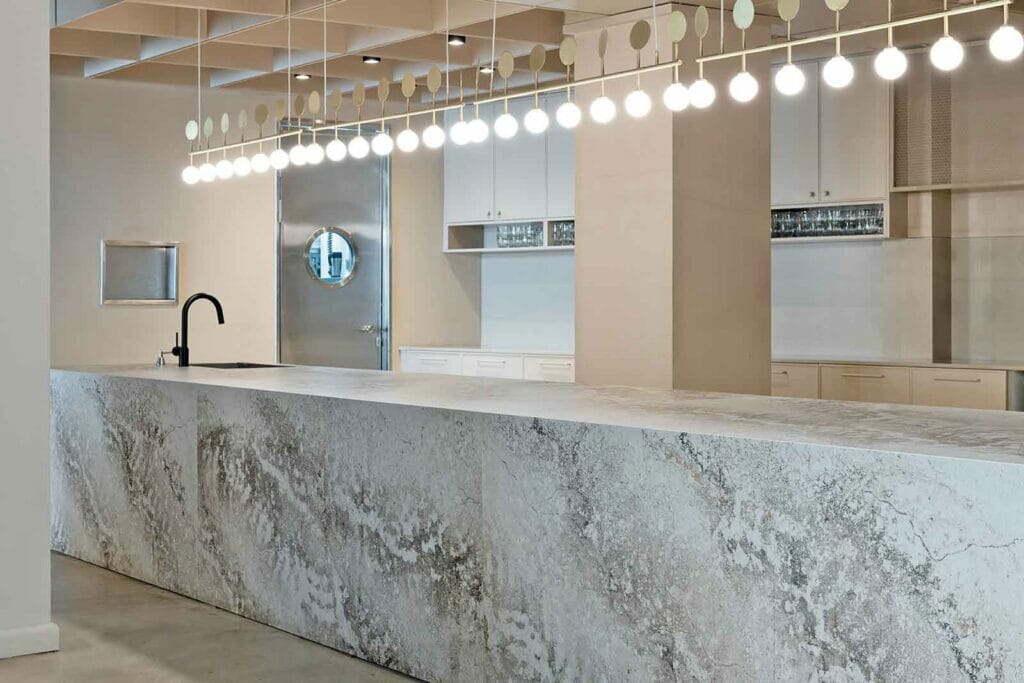 בחדרי השירותים, במטבחים ובאי הענק שבחלל המרכזי, ״ככל הנראה הגדול בארץ״, השתמשו השניים במשטחי אבן קיסר, רובן מהסדרות החדשות של החברה. ״זה אי ענק של שמונה ומשהו מטרים, כולו משטחים חדשים של אבן קיסר, כל בוקר מגישים עליו את ארוחות הבוקר ובמשך היום הוא משטח עבודה לכל דבר״.