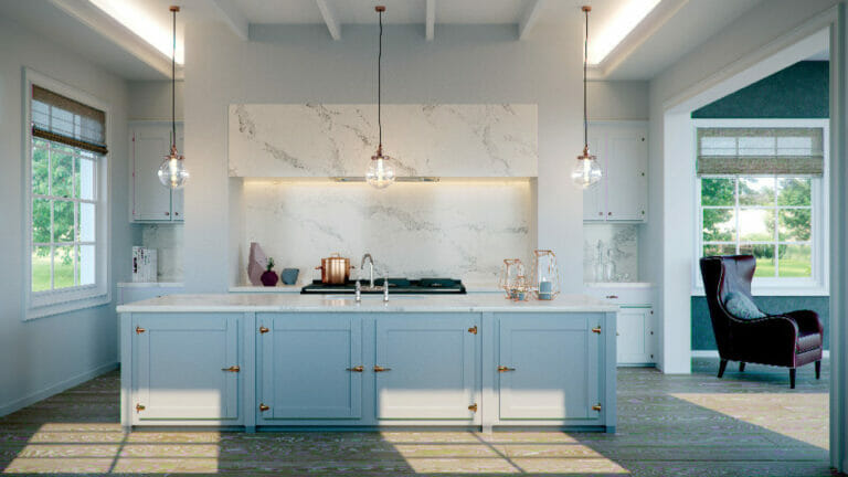 דגם אבן קיסר 5031 Statuario Maximus במטבח טרנזישיונל מודרני עם אי | 2024